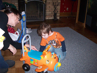 That afternoon Billy, Davis, and I went to Mom and Dad's house to open gifts. Davis got a ride on Diego Rescue Plane and was completely enchanted by it. What a perfect gift! Billy and I got a super great new digital camera so we can finally share pictures of our family! Thanks for the great gifts! We brought Betsi and Liam's gifts home for them to open when they come back on Tuesday.
